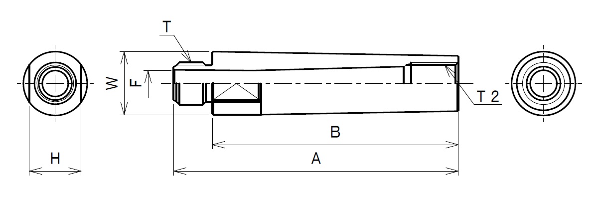 | 型式 | 接続ねじ(T) | 接続ねじ(T2) | A | B | φF | H | W | 材質 | 重さ |