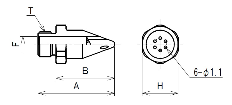 | 型式 | 接続ねじ(T) | A | F | H | 材質 |